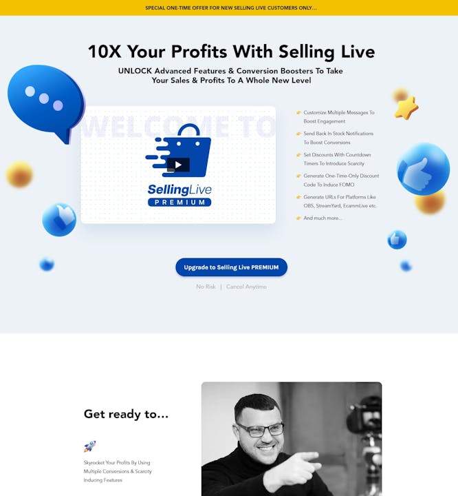 - Selling Live upgrade visibility for customers along with their own ready-to-publish pages, copy & videos
